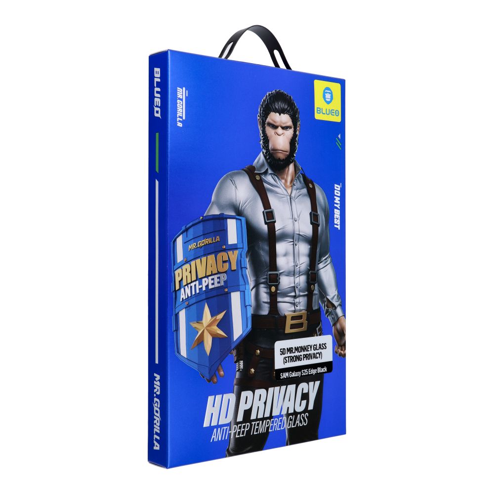 5D ochranné sklo Mr. Monkey – pro telefon Samsung Galaxy S25 Edge, barva černá (ochrana proti nahlížení, vysoká úroveň soukromí).