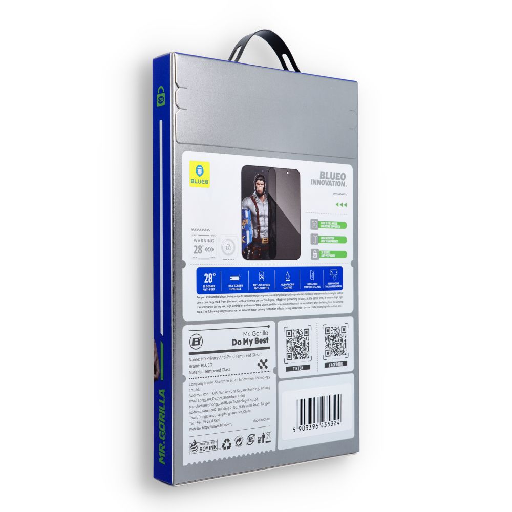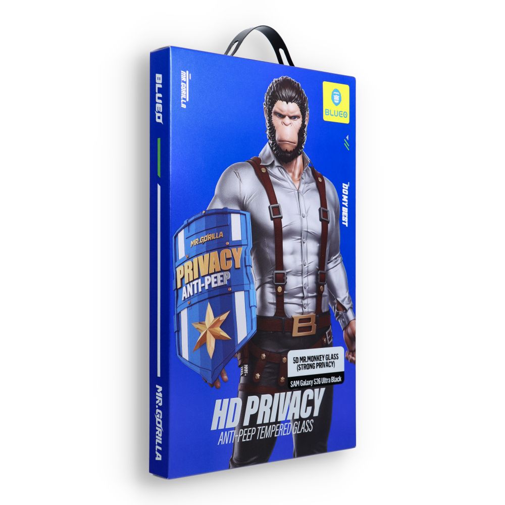 Skleněná fólie Mr. Monkey Glass je vysoce kvalitní tvrzené sklo, které pokrývá celou lepicí plochu. Inovativní antireflexní vrstva omezuje škodlivé modré záření. Matovaná povrchová úprava zajišťuje ještě lepší kvalitu obrazu a zároveň zachovává vysokou citlivost dotykové ovládání. Díky extrémně nízké tloušťce 0,26 mm má produkt vynikající propustnost světla. Povrch je opatřen oleofobní vrstvou, která usnadňuje čištění od otisků prstů a mastnoty. Matovaná povrchová úprava displeje je oblíbená mezi hráči, protože zajišťuje vynikající kvalitu obrazu a zároveň zvyšuje odolnost proti poškrábání. Ultraodolná, bezbublinová a precizně vyříznutá, což zaručuje snadnou instalaci a demontáž. Model "Strong Privacy" je unikátní skleněná fólie s filtrem, který ztěžuje vidění obrazovky z úhlu většího než 30 stupňů. Tímto způsobem je znemožněno nahlédnout do obsahu telefonu z bočního pohledu, a obraz je viditelný pouze uživateli. Vlastnosti: Lepicí vrstva: Pokrývá celou lepicí plochu. Tloušťka: 0,3 mm. Úroveň ochrany: Vysoká. Úroveň bezpečnosti: Vysoká. Ochrana proti prachu: Odolnost vůči prachu na okrajích telefonu. Rychlé lepení: Rychleschnoucí lepidlo.