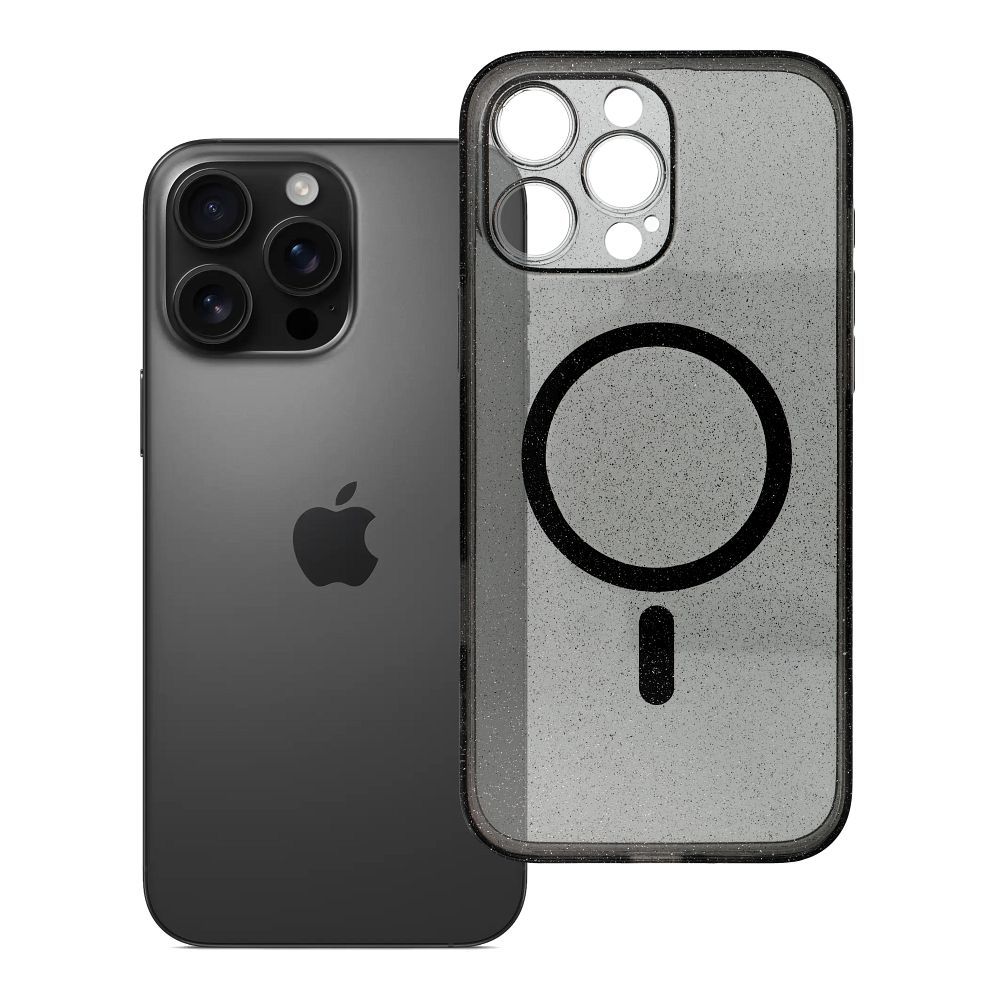 Kryt pro iPhone 16 PRO MAX, průhledný, s magnetickým pouzdrem (ochrana proti poškrábání / ochrana fotoaparátu), kompatibilní s MagSafe, černý s efektem třpytek.