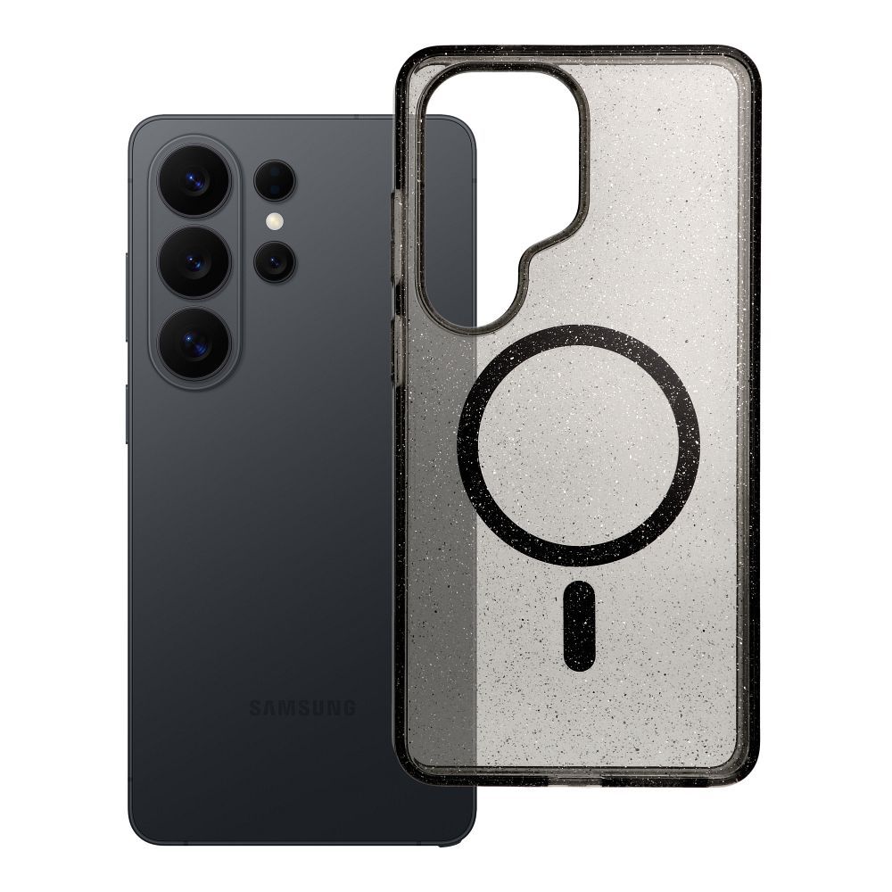 Kryt pro telefon Samsung S26 ULTRA Clear Mag Cover (STR), kompatibilní s technologií MagSafe, černá barva s efektem třpytek.
