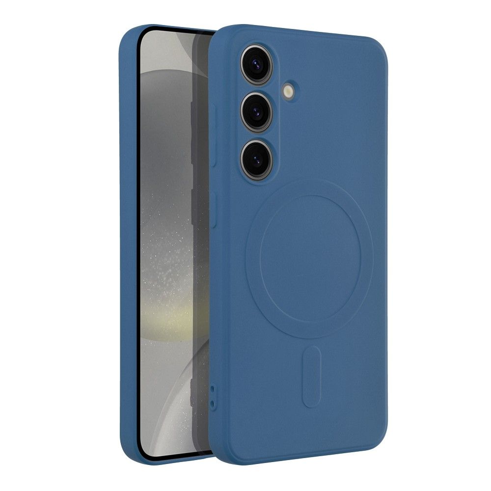 Pouzdro pro telefon Samsung S24, vyrobené ze silikonu, s magnetickým krytem kompatibilní s technologií MagSafe, barva: modrá.
