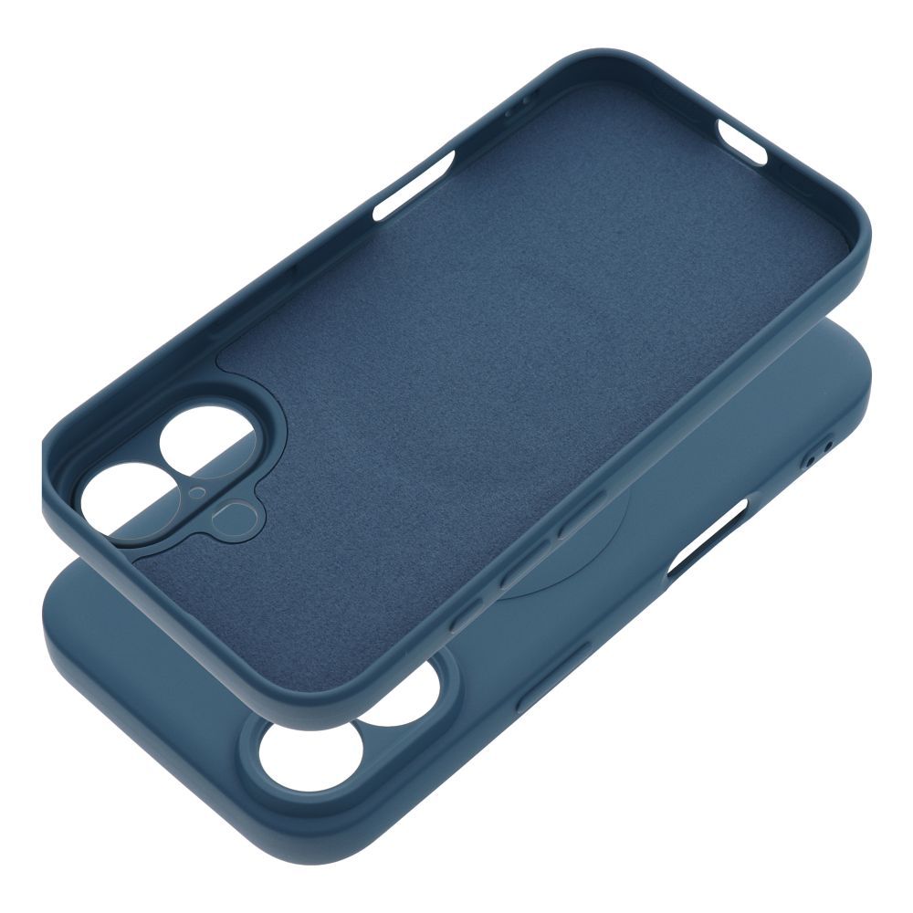 Obal na iPhone 16, silikonový, s magnetickým prvkem (MagCover), kompatibilní s technologií MagSafe, barva: modrá.