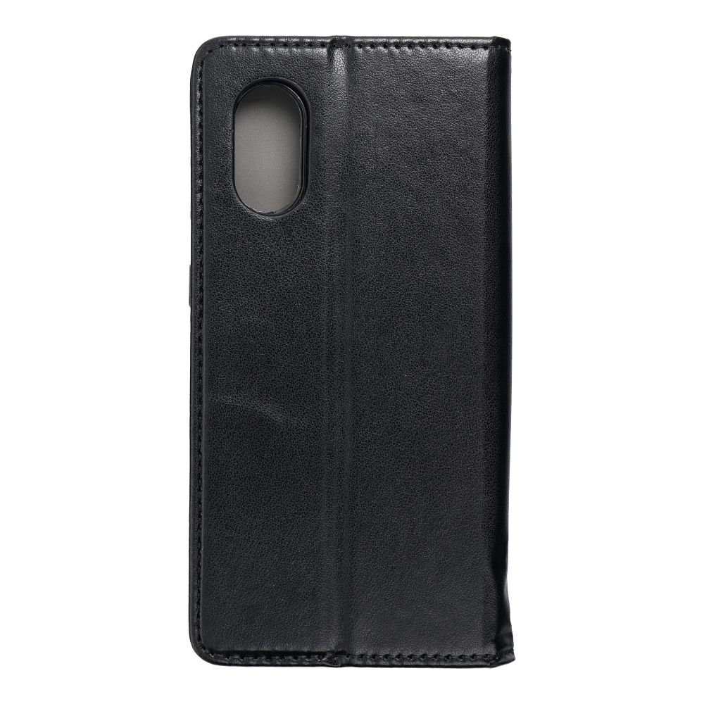 Elegantní obal Smart Magneto s magnetickým zapínáním je klasický pouzdro na telefon s funkcí peněženky a stojanu pro sledování videa. Je vyroben z metalizovaného materiálu a má vnitřní podšívku z měkké tkaniny, která chrání obrazovku před poškrábáním. Nadčasová elegance. Černý, matný design vytváří dojem sofistikovanosti. Vnitřní černý vložka z materiálu TPU dokonale ladí s celkovým designem pouzdra. Toto pouzdro je perfektním doplňkem pro každý šatník. Funkční a praktické. Pouzdro má mnoho funkcí, které zajišťují pohodlné používání. Obsahuje vnitřní kapsu, do které lze uložit bankovní karty nebo dokumenty. Umístění v horizontální poloze umožňuje pohodlně procházet internet nebo sledovat filmy. Magnetické zapínání zabraňuje nechtěnému otevírání pouzdra, a díky výřezům pro tlačítka nebudete mít problémy s používáním telefonu. Spolehlivá ochrana. Vnitřní část pouzdra z materiálu TPU je vyrobena z měkké tkaniny, která chrání obrazovku před poškrábáním. Navíc se nemusíte obávat, že by telefon vypadl, protože pevně drží uvnitř pouzdra. Materiál: Plast a TPU. Zapínání: magnet.
