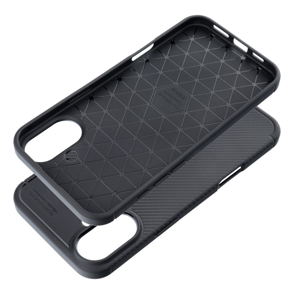 Pouzdro pro iPhone 16 PLUS, karbonové, prémiová černá barva.