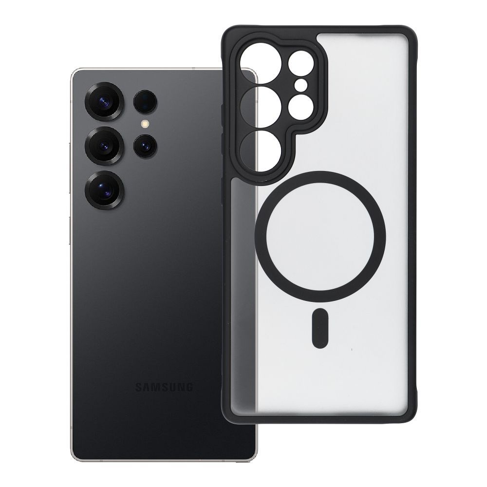 Pouzdro pro telefon Samsung S25 ULTRA s matným povrchem a magnetickým upevněním (MagSafe), barva černá.
