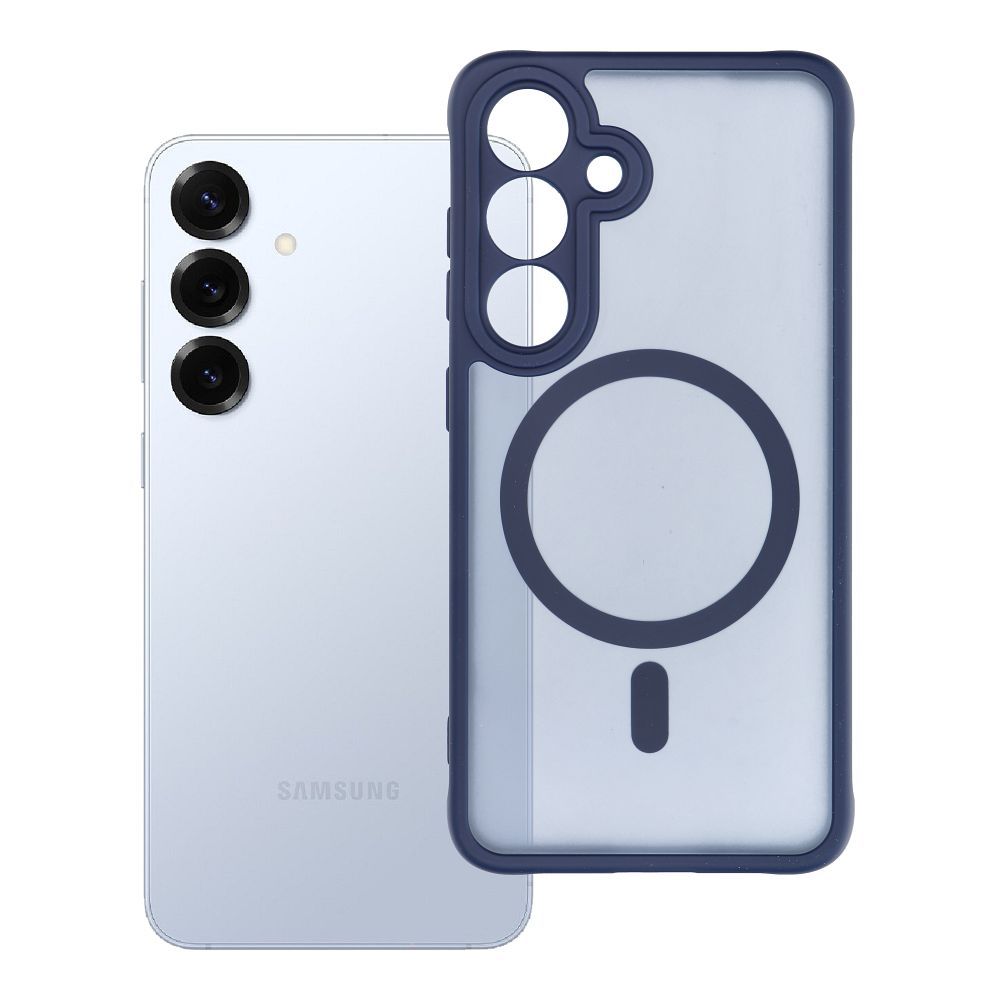 Pouzdro pro telefon Samsung S25, plně matné, s magnetickým zapínáním (MagCover), kompatibilní s technologií MagSafe, barva: modrá.