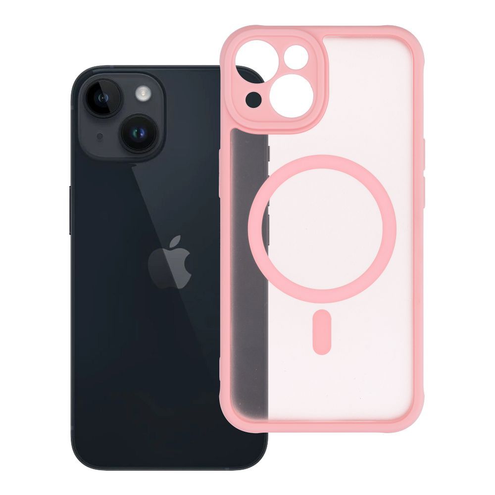 Pouzdro pro iPhone 14, celoplošné matné provedení s magnetickou funkcí (MagSafe), světle růžová barva.
