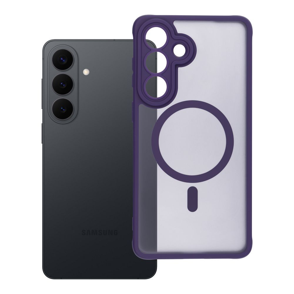 Pouzdro pro telefon Samsung S26 s matným povrchem a magnetickým zapínáním, kompatibilní s technologií MagSafe, barva: fialová.