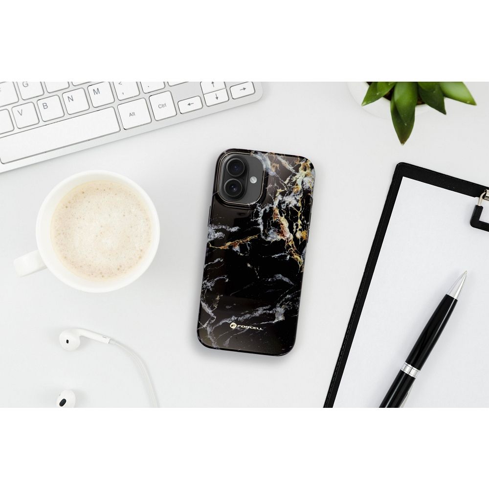 Pouzdro pro iPhone 15 PRO MAX, značka Forcell, model F-Protect Mirage, kompatibilní s technologií Magsafe, odolné proti nárazům (testováno podle vojenských standardů), barva: černý mramor.