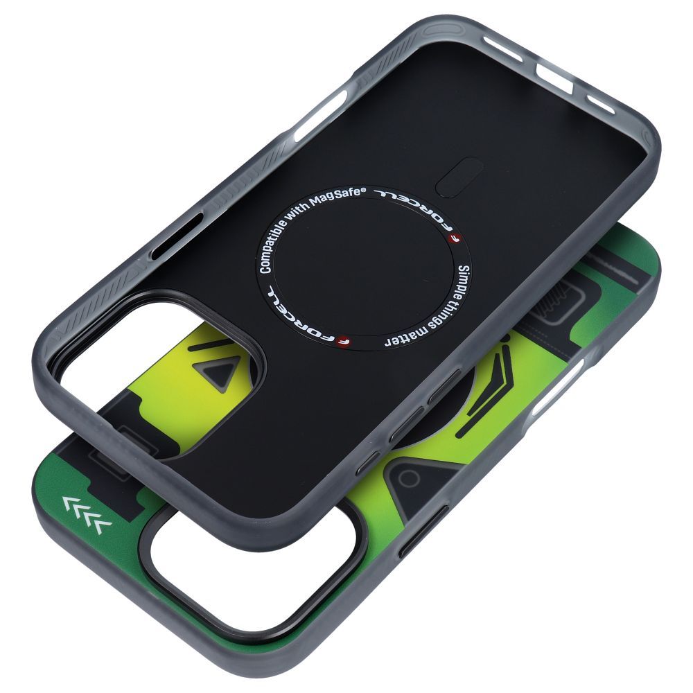 Pouzdro pro iPhone 16 PRO MAX značky Forcell, řada F-Protect Levels, s dvojitou vrstvou a technologií 4D, kompatibilní s Magsafe, vojenská odolnost proti pádům, barva: kybernetická zelená.
