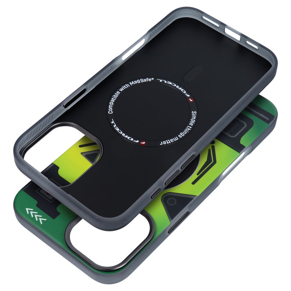 Pouzdro na iPhone 16 PLUS Forcell F-Protect Levels, dvojitá vrstva, technologie 4D, kompatibilní s Magsafe, vojenská odolnost proti pádům, barva: cyber green.