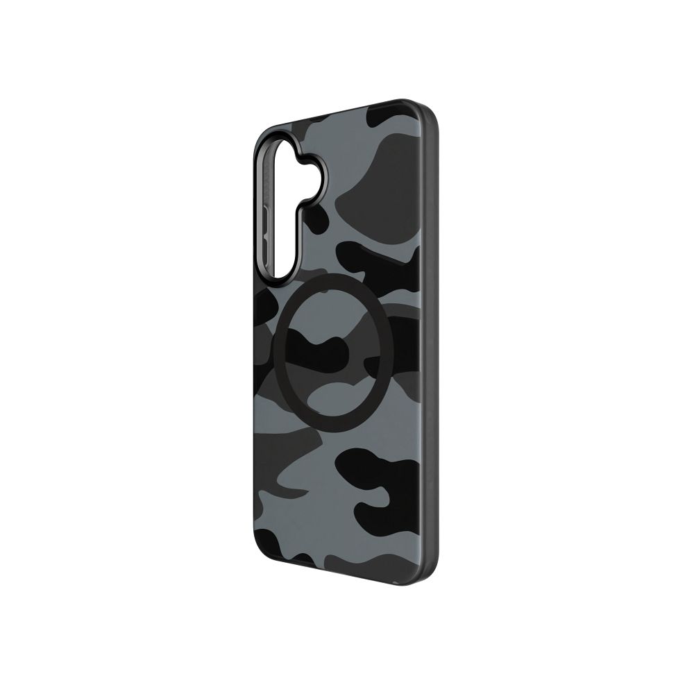 Pouzdro pro telefon Samsung S25 PLUS značky Forcell, řada F-Protect, s dvojitou vrstvou a technologií 4D, kompatibilní s Magsafe, odolné proti pádům (testováno dle vojenských standardů), barva: černá kamufláž.