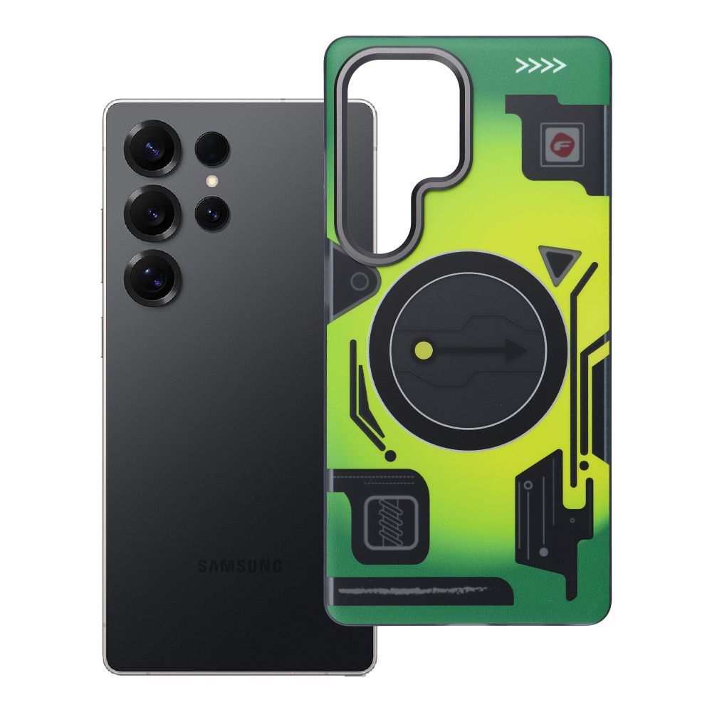Kryt pro telefon Samsung S25 ULTRA značky Forcell, řada F-Protect, dvoustupňová ochrana, technologie 4D, kompatibilní s Magsafe, vojenská certifikace odolnosti proti pádům, barva: kybernetická zelená.