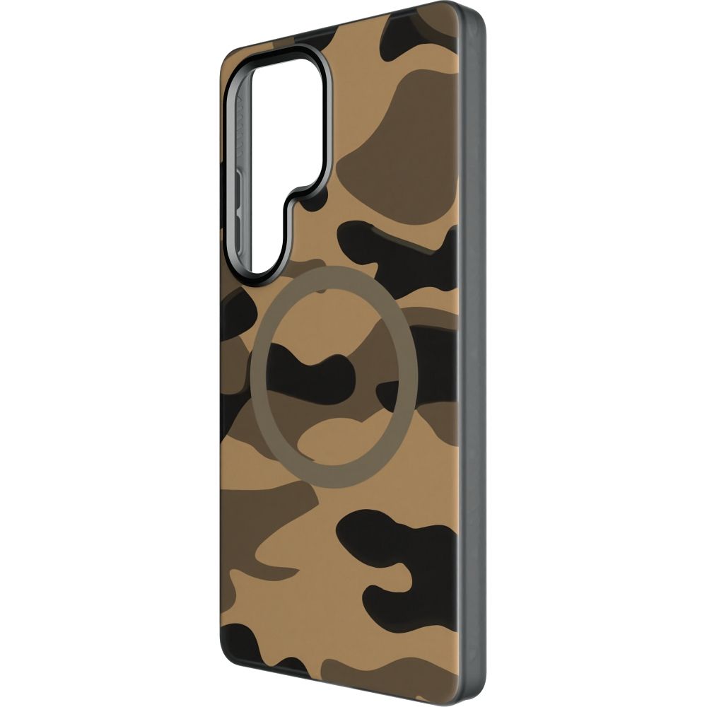 Pouzdro pro Samsung S25 ULTRA Forcell F-Protect, dvouvrstvé provedení s technologií 4D, kompatibilní s Magsafe, vojenská odolnost proti pádům, dezén "pouštní kamufláž".