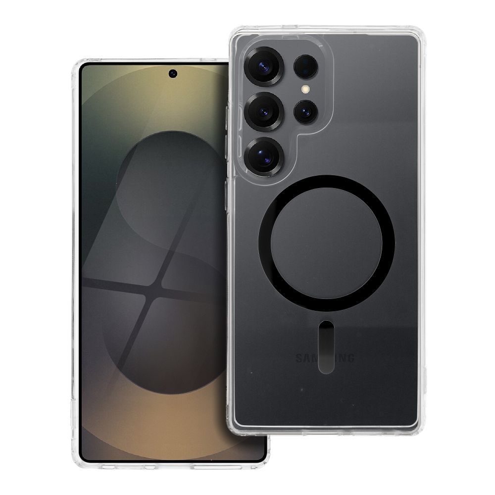 Pouzdro pro telefon Samsung S25 ULTRA, model Drop Glue, barevné provedení s kroužkem a magnetickým zapínáním (Mag Cover), kompatibilní s technologií MagSafe, barva: černá.