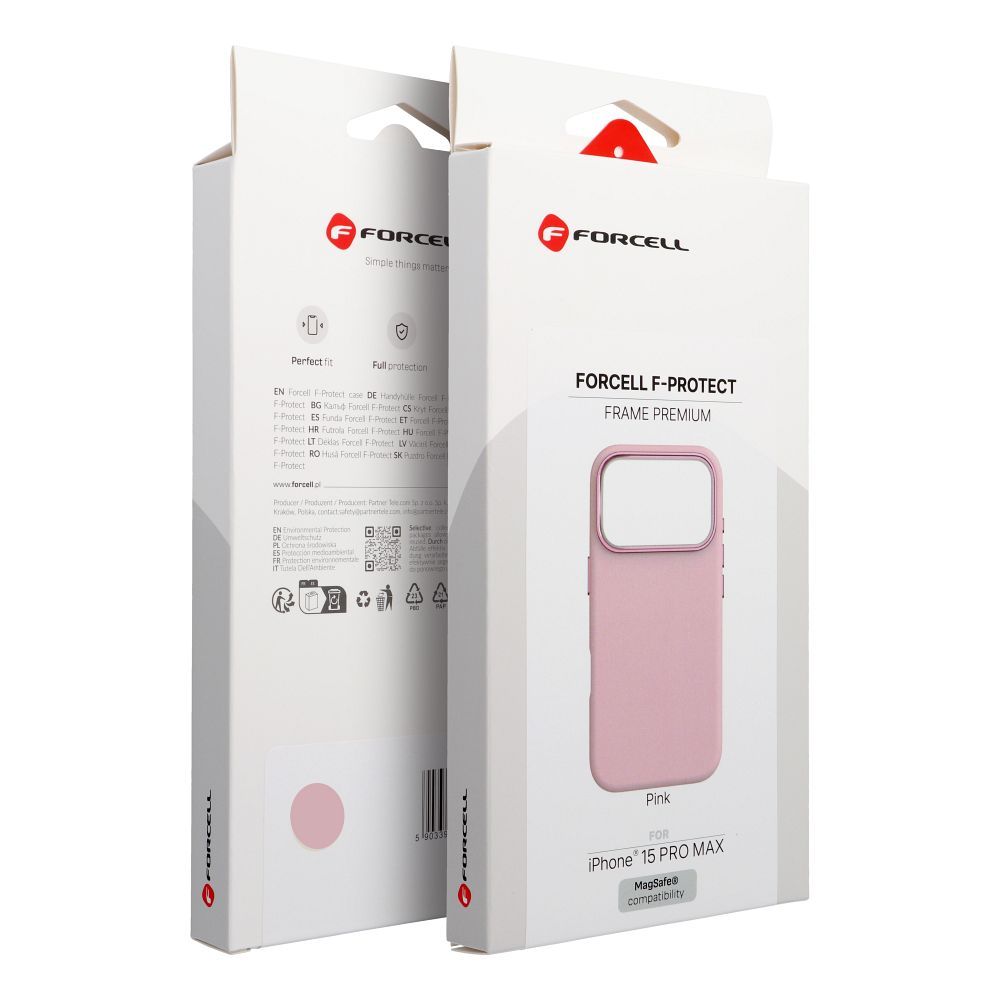 Pouzdro pro iPhone 15 PRO MAX značky Forcell, řada F-Protect Frame, prémiová kvalita, kompatibilní s technologií Magsafe, barva: růžová.