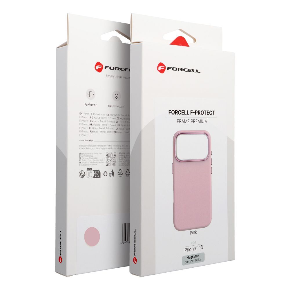 Pouzdro Forcell F-Protect Frame Premium pro iPhone 15, kompatibilní s technologií Magsafe, barva: růžová.