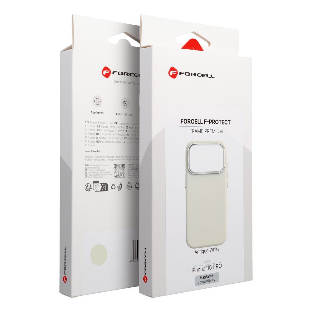 Pouzdro pro iPhone 15 PRO značky Forcell, řada F-Protect Frame, prémiové provedení, kompatibilní s technologií Magsafe, barva: starožitná bílá.