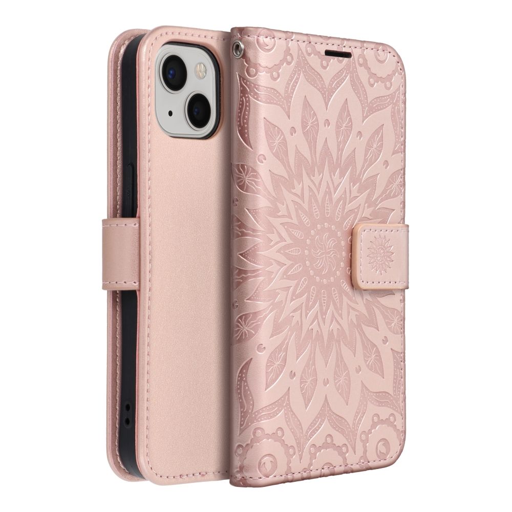 Kryt MEZZO na telefon iPhone 13 s motivem mandaly, barva růžové zlato.