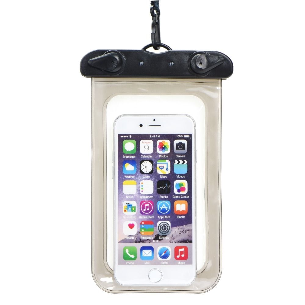 Univerzální vodotěsný obal se dvěma plastovými uzavíratelnými částmi a praktickým uchycením na vodítku. Ideální na pláž – zabrání postříkání vody. Obal je vybaven speciální dvojitou ochranou, která snižuje riziko vniknutí vody do zařízení. Celý obal je vyroben z odolného silikonu. Obal má popruh, který umožňuje zavěšení telefonu na krk. Nemá certifikaci vodotěsnosti. Rozměry okénka: 80 x 145 mm.