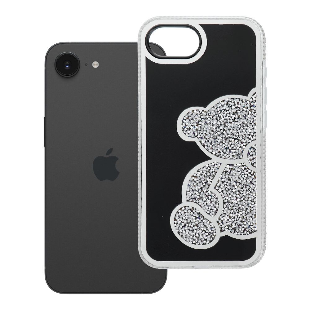 Kryt na telefon iPhone 16e (SE 4, 2025) s motivem medvídka, stříbrná barva.